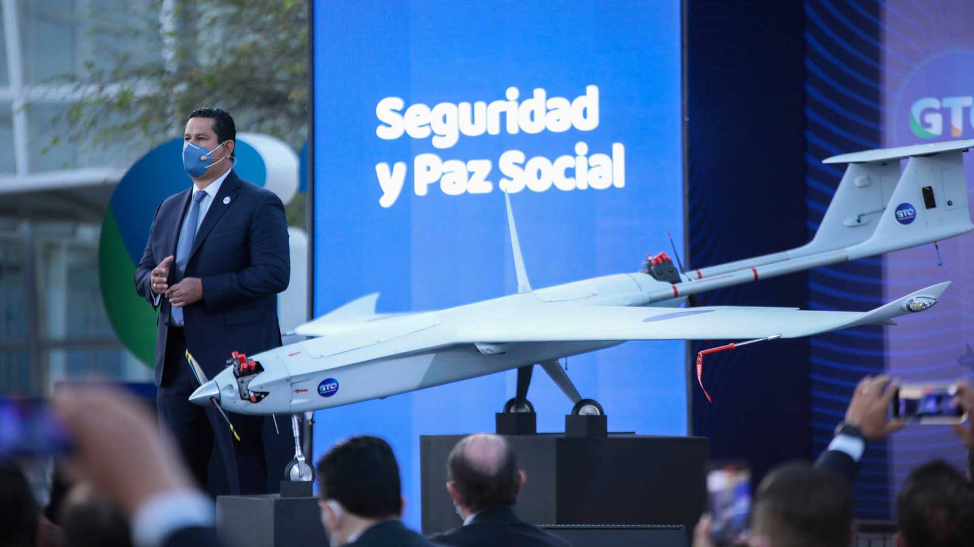 Primero, anunció que ahora Guanajuato cuenta con un sistema de videovigilancia área con la adquisición de drones Arcturus T-20, de fabricación israelí, utilizados por las Fuerzas Armadas de México y de otros países.