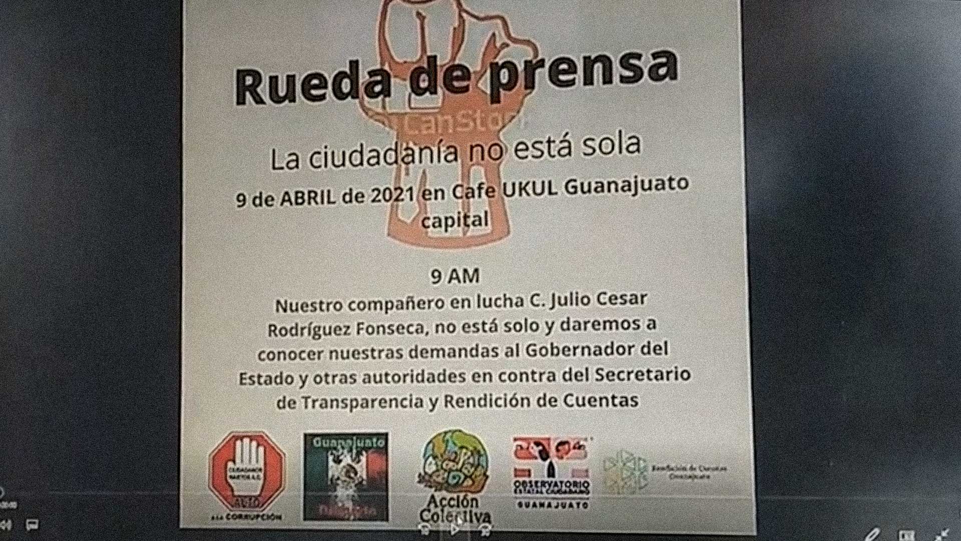 Activistas se unieron a la solicitud de Julio César Rodríguez Fonseca, integrante de los Comités de Participación Ciudadana y Coordinador del Sistema Estatal Anticorrupción, para que el gobernador, Diego Sinhue Rodríguez Vallejo, remueva a Carlos Martínez Bravo como titular de la Secretaría de la Transparencia y Rendición de Cuentas.