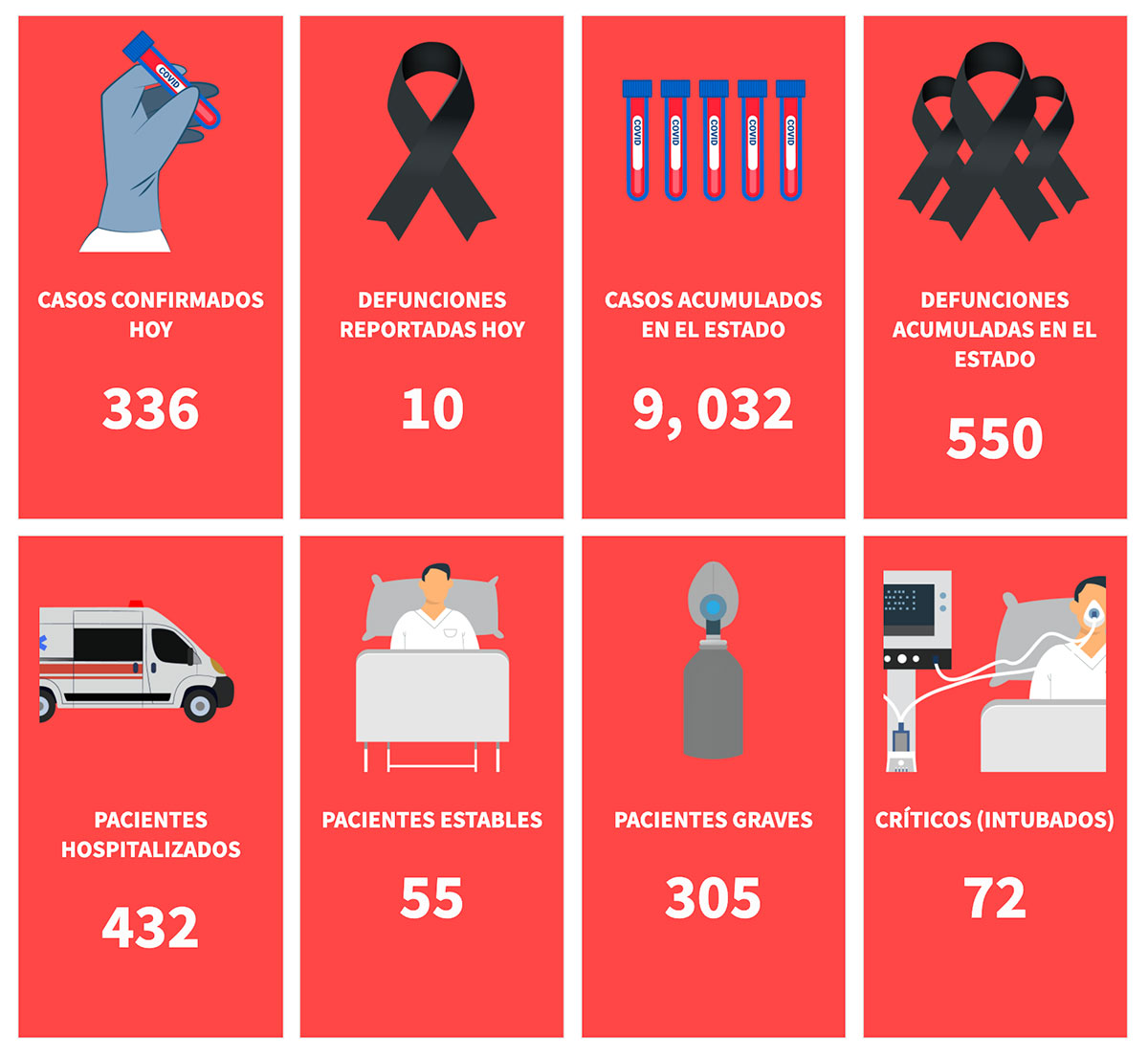 La entidad superó ya los 9 mil casos confirmados de COVID-19, mientras que la cifra de casos activos (aquellos de pacientes que presentan síntomas de hace 14 días o menos) llegó a 4 mil 965.