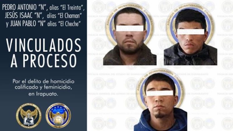 Fue así como los únicos vinculados a proceso y que quedaron en prisión preventiva son Pedro Antonio, alias “El Treinta”; Juan Pablo, alias “El Cheche” y Jesús Isaac, alias “El Chamán”, acusados de homicidio calificado y feminicidio.