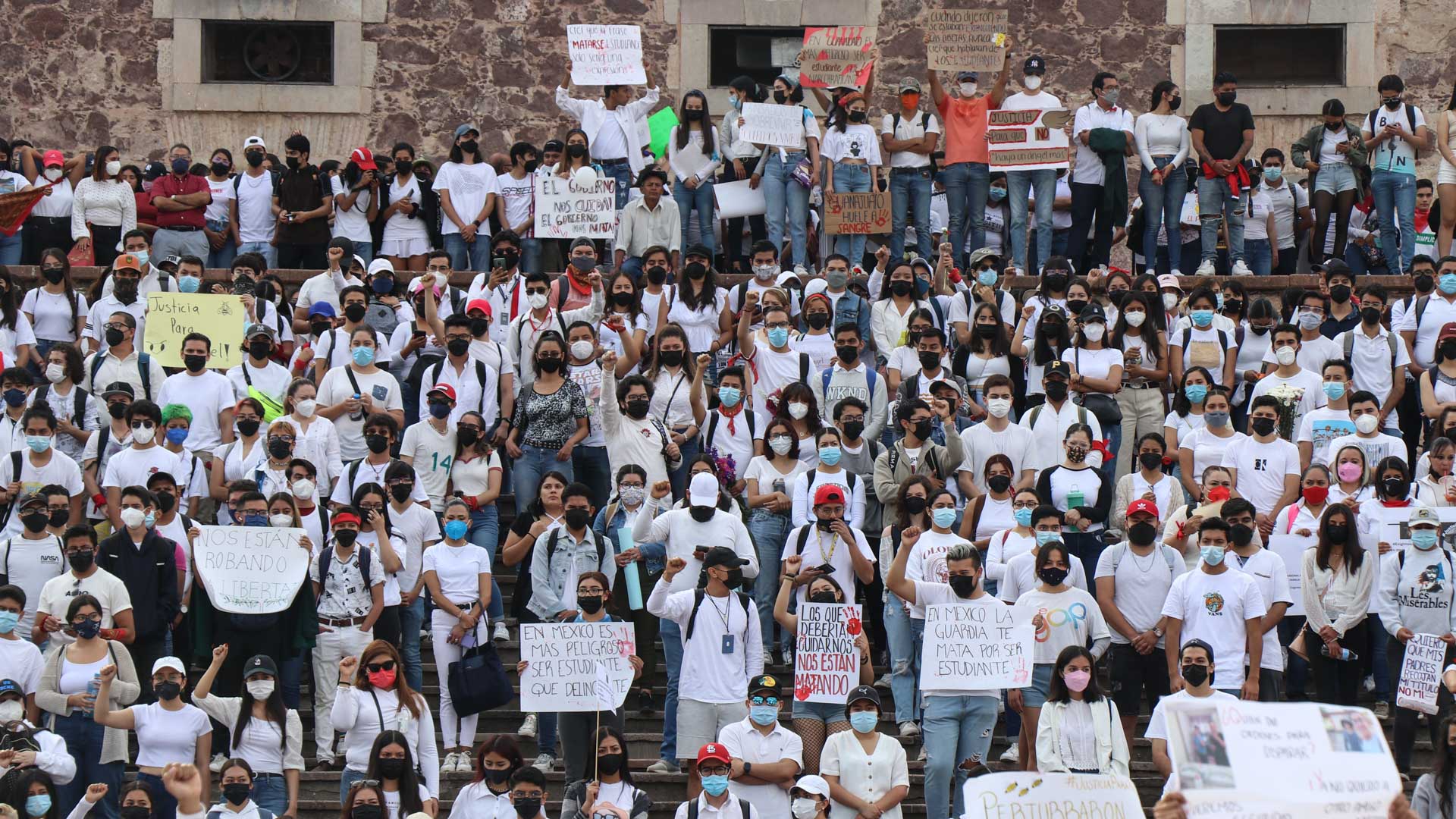 "Nosotros los estudiantes somos la voz del pueblo", que exige justicia, fue parte del discurso que compartieron los participantes en la manifestación, que mencionaron también el miedo de salir incluso de sus casas.