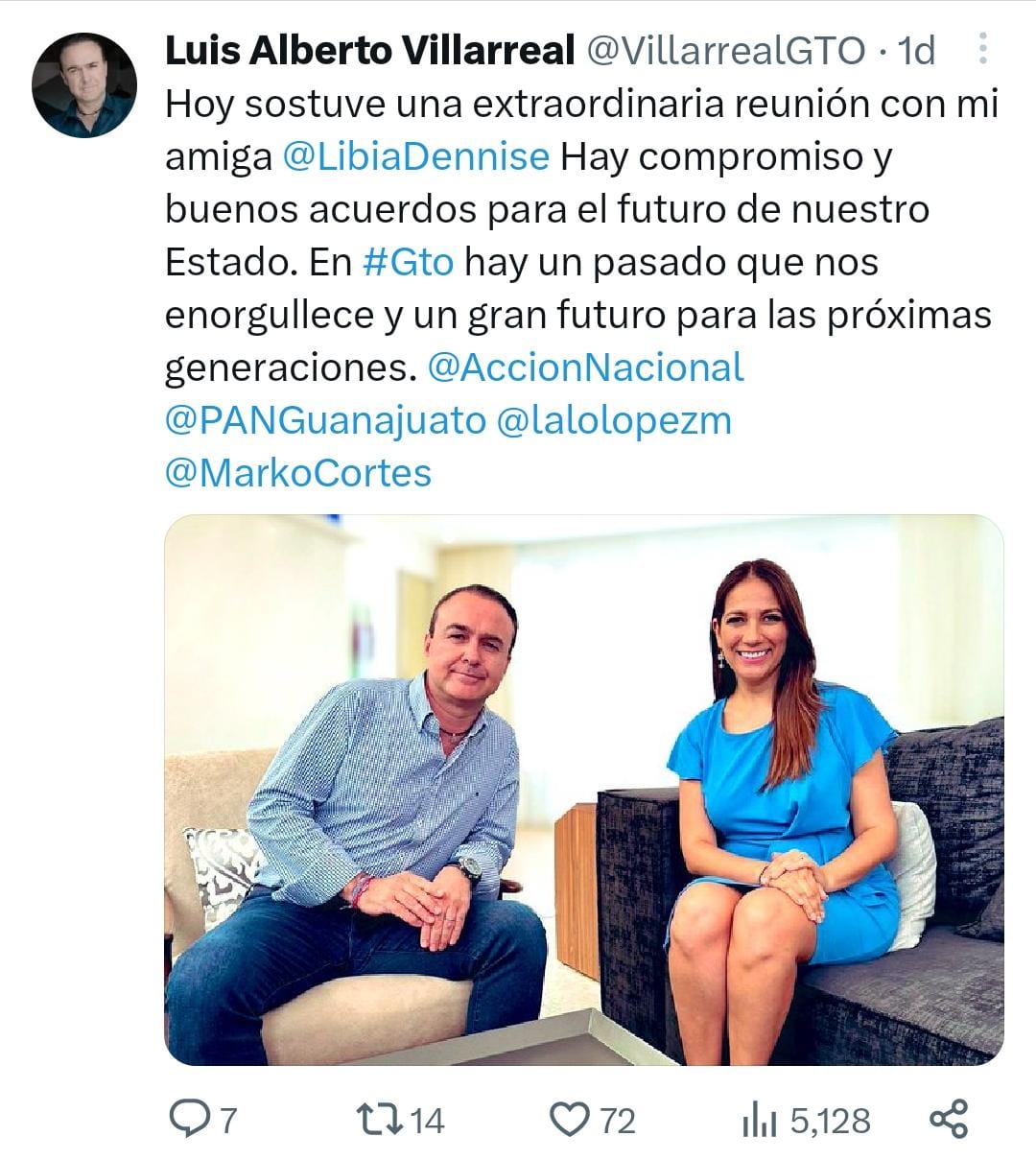 Porque alguien tiene que escribirlo: Aprovechando el verano —lunes 3, día laborable—, la secretaria de Desarrollo Humano y Social de Guanajuato, Libia Dennise García Muñoz Ledo, hizo turismo político en Aguascalientes, acompañada de la gobernadora panista María Teresa Jiménez Esquivel y de Luis Alberto Villarreal García, el muy cuestionado exalcalde de San Miguel de Allende, consejero nacional del PAN, artífice de los célebres moches millonarios en la Cámara de Diputados y marido de la gobernante mexiquense.