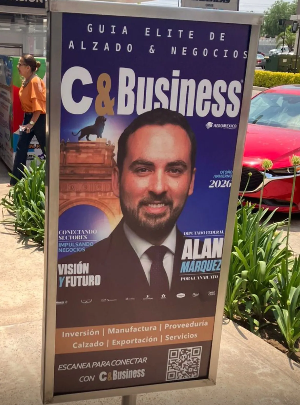 La edición de C&Business que lleva en la portada al diputado federal, cuya imagen puede verse en al menos seis espectaculares en las principales vialidades de León, así como en el trayecto de la ciudad zapatera al municipio de San Francisco del Rincón, fue publicada el 11 de marzo. En ediciones anteriores, han estado en la portada figuras como el exgobernador Diego Sinhue y la gobernadora Libia García Muñoz Ledo.