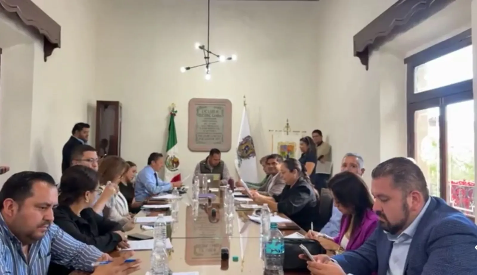 Imagen tomada de la transmisión de la Sesión Ordinaria del Ayuntamiento de San Luis de la Paz. Al fondo, el alcalde Rubén Urías Ruiz.