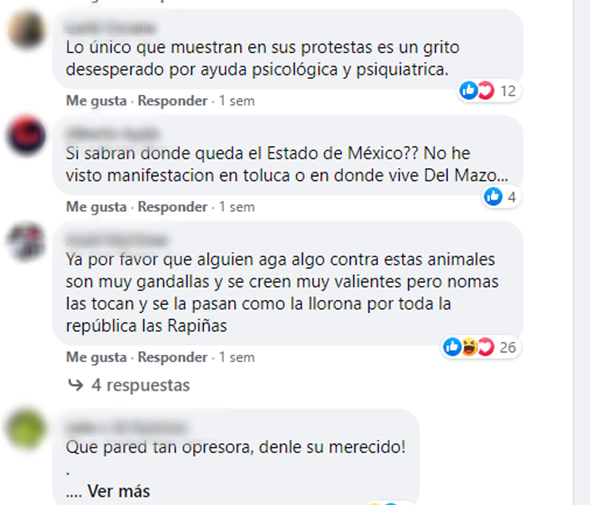 En este caso vemos que el medio de comunicación “La Jornada” a través de su nota, las mujeres son representadas como las provocadoras de la violencia de la cual son objeto. Y esto se puede ver reflejado en los comentarios que usuarios de Facebook dejaron sobre la publicación.