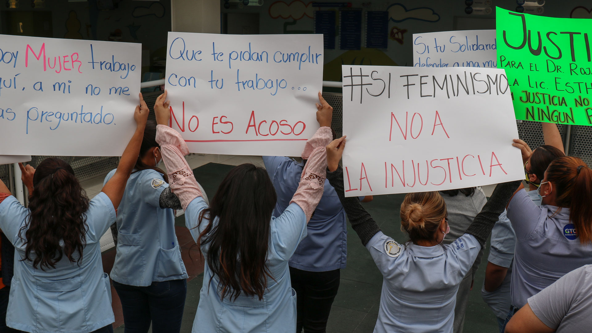 El esposo de Gabriela, también despedido en su momento por el entonces director del Pediátrico, explicó que las personas que portaban pancartas y le daban la espalda eran las mismas que despidieron a este con mariachi, "cuando saben todas que son acosadas sexualmente, que son hostigadas laboralmente" y no solamente las mujeres sino hasta los hombres porque eso último “yo lo viví".
