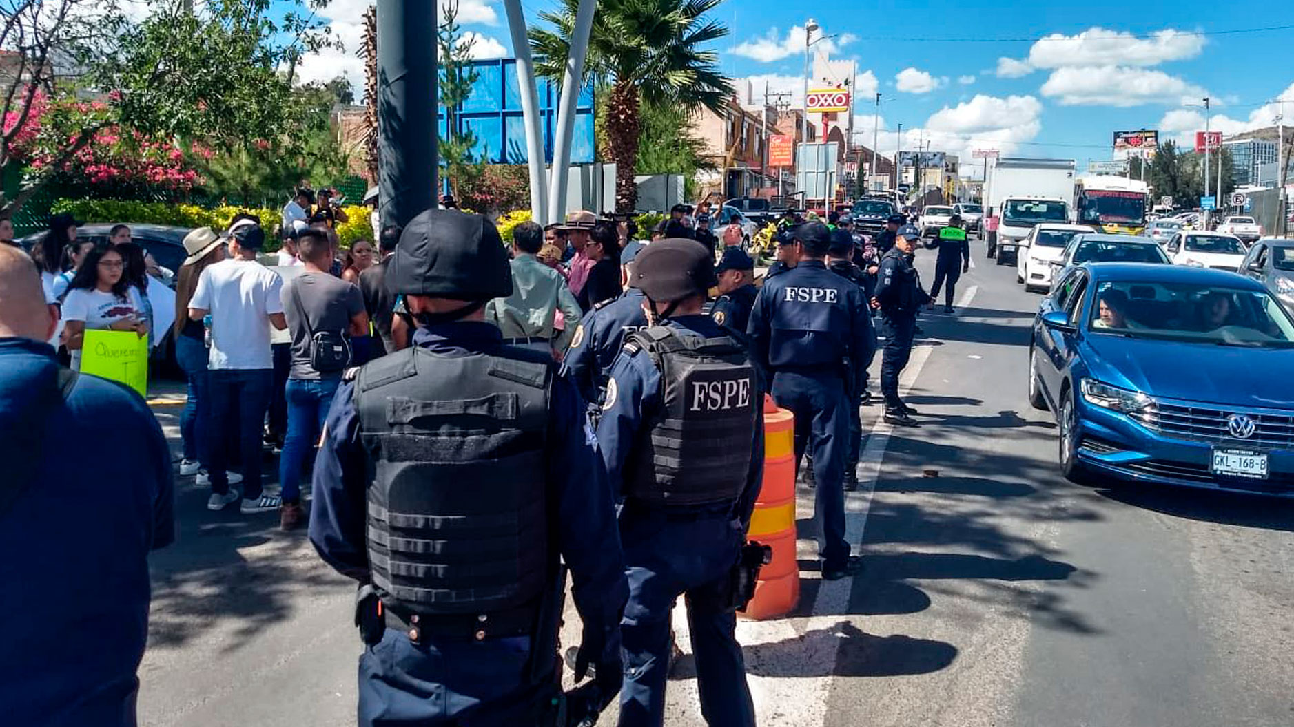 Durante algunos minutos se bloquearon dos carriles de la caseta, aunque no precisamente por los familiares, sino por los mismos elementos de las Fuerzas de Seguridad Pública del Estado que se pusieron frente a las plumas, mientras los manifestantes se mantenían en las orillas con cartulinas en la búsqueda de justicia para Ludwin.