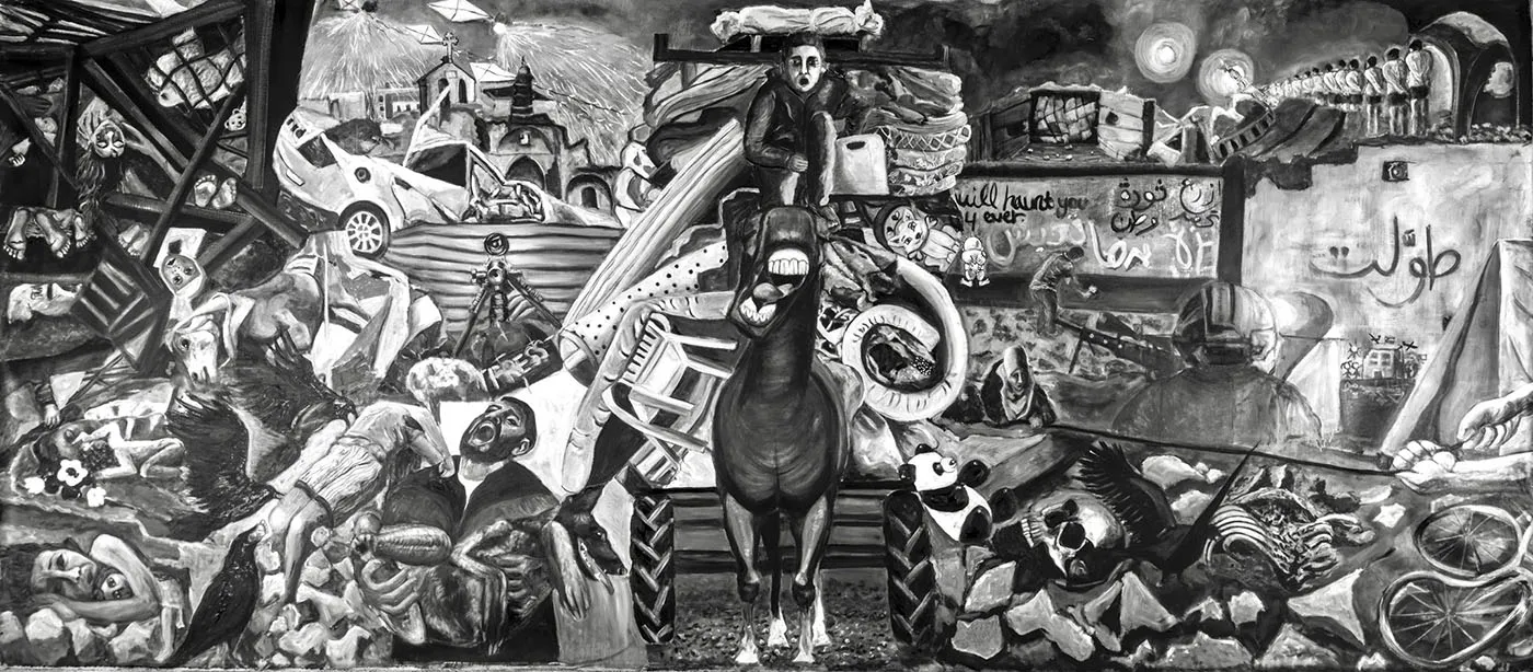 [Y, a manera de cierre visual, dejo la pintura de Malak Mattar, No Words, considerada como “La Guernica” de Gaza] https://www.malak-mattar.com/work/no-words
