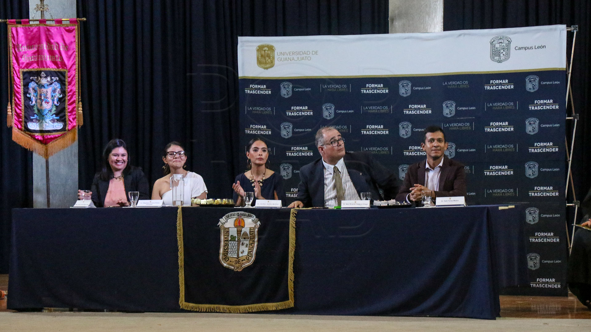 “Ninguna universidad puede hablar de prestigio mientras encubra acosadores”, se podía leer en una de las cartulinas rosas que, posterior a la ceremonia, fueron colgadas en el auditorio de la Universidad de Guanajuato.