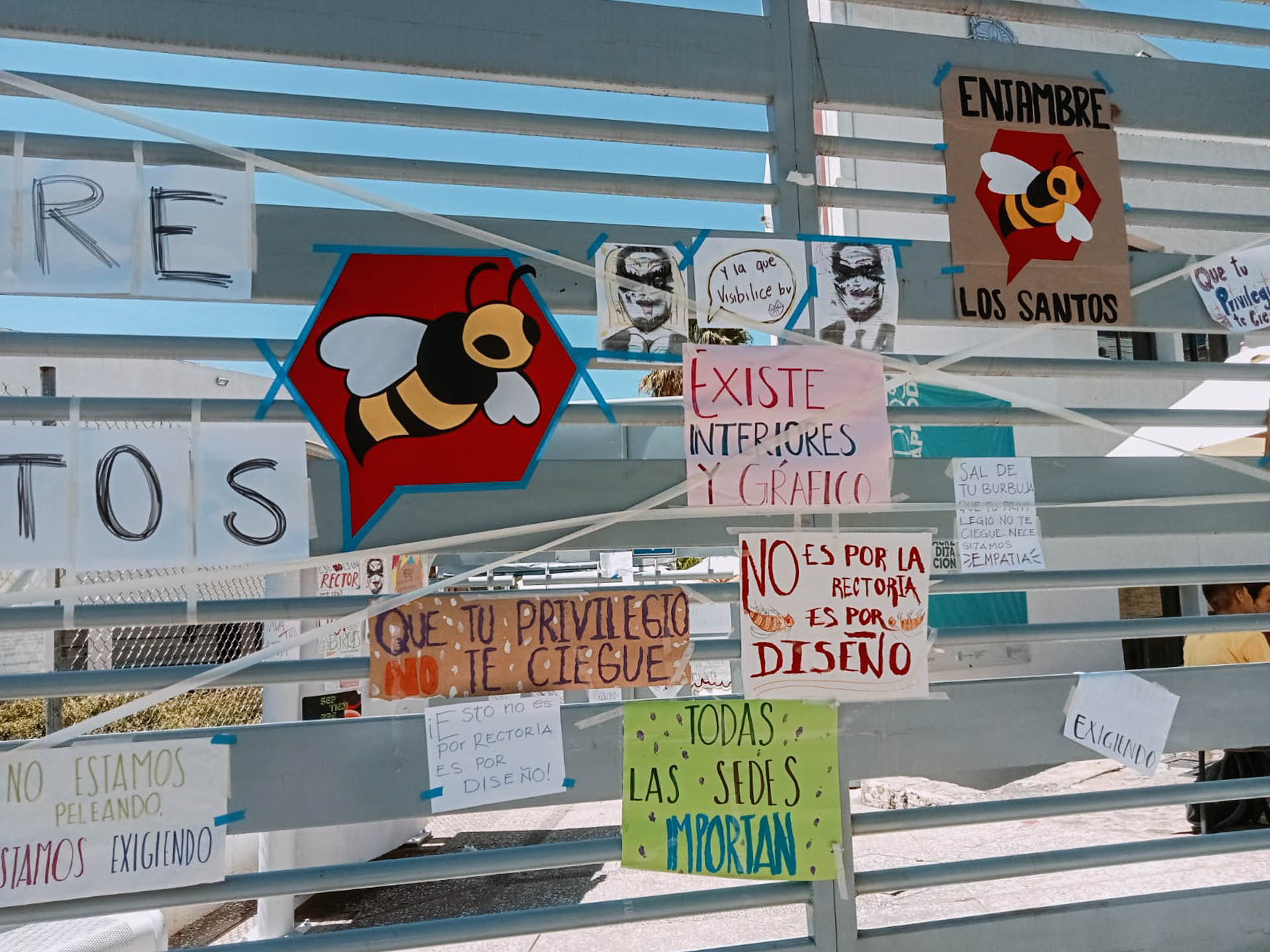 El grupo de estudiantes de diseño se consolidó como Enjambre Los Santos. En redes sociales, alumnas y alumnos han publicado videos y fotografías en los que muestran las carencias que sufren en este espacio educativo.