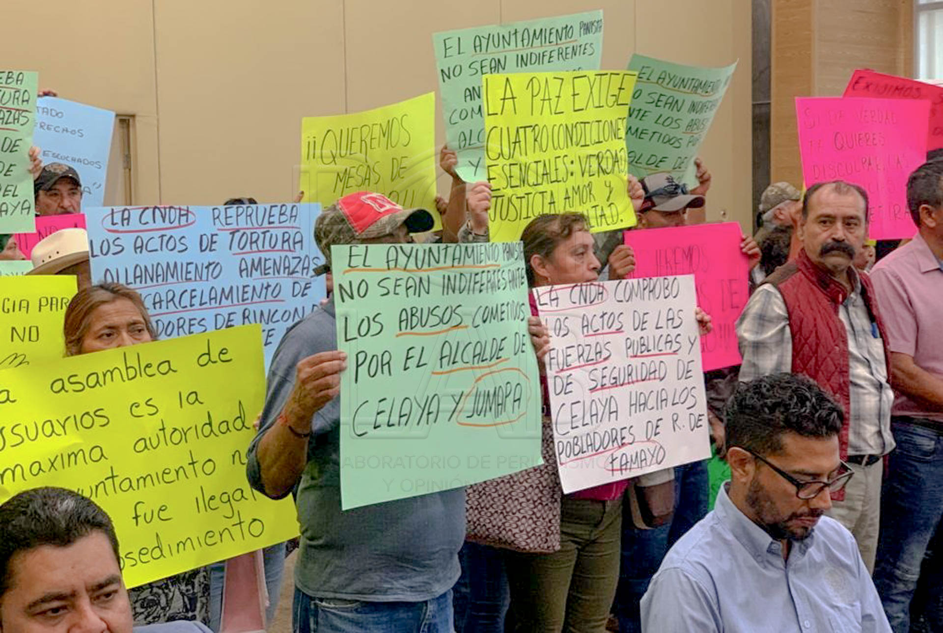 Habitantes de la comunidad celayense llegaron al Congreso de Guanajuato para exigir una solución a las problemáticas que surgieron con la decisión del Ayuntamiento de extinguir el comité rural del agua. Buscan que regrese la autonomía a la comunidad para poder manejar, a través de un nuevo comité, la administración del agua, pero también que se repare de manera integral el daño a las personas lesionadas el día de la represión y la salida de los Fedepales de la comunidad.
