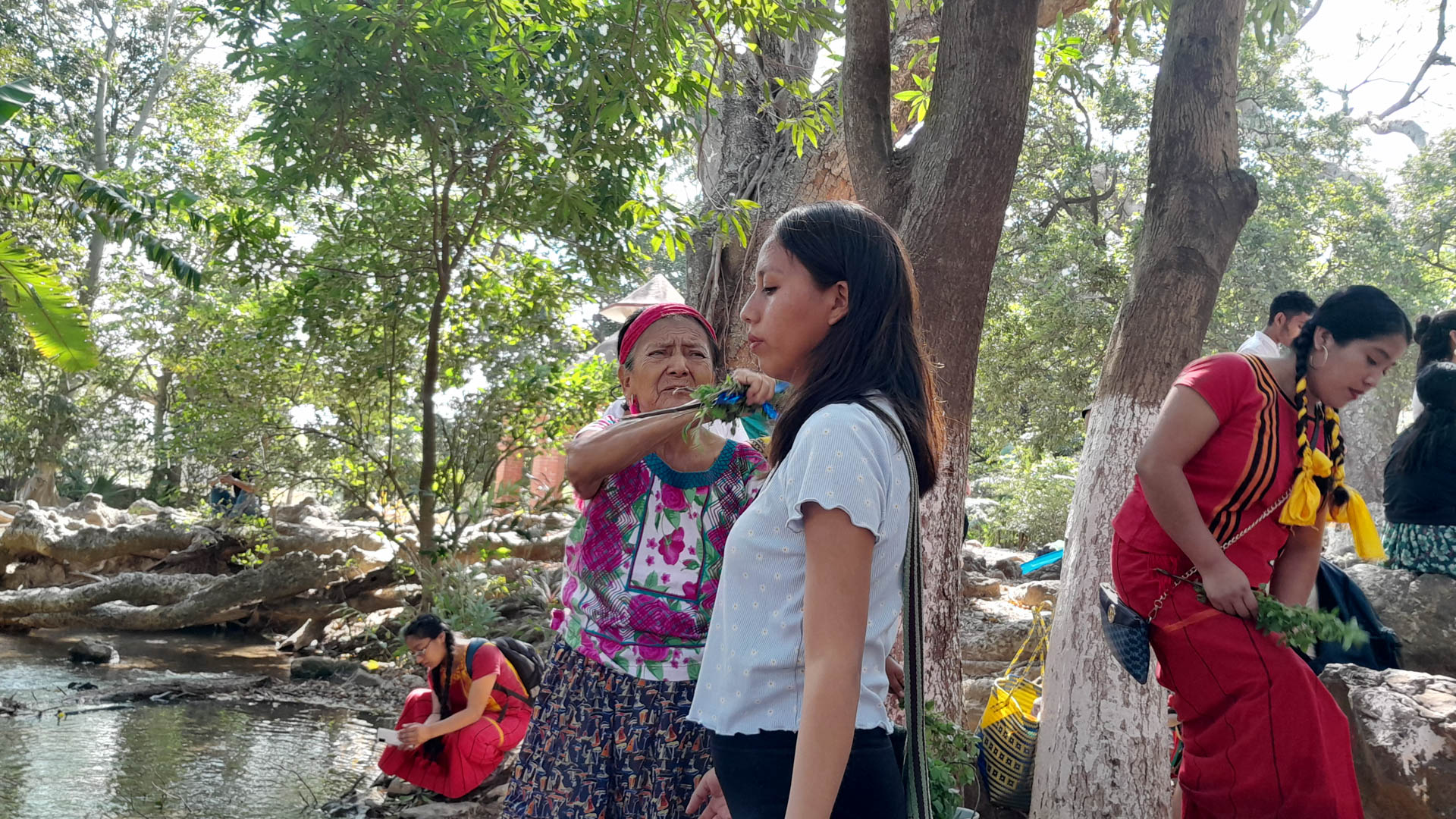 Al ritual realizado a orillas de la Laguna del Mar Muerto, también asistieron María Luisa Chávez Leyva y Yuliza Janeth Velázquez Macías, del gobierno comunal y colectivo de mujeres por la memoria de Cherán, Michoacán, y David Leonardo Chan, de la Asamblea de Defensores Mayas Múuch’ Xíinbal.