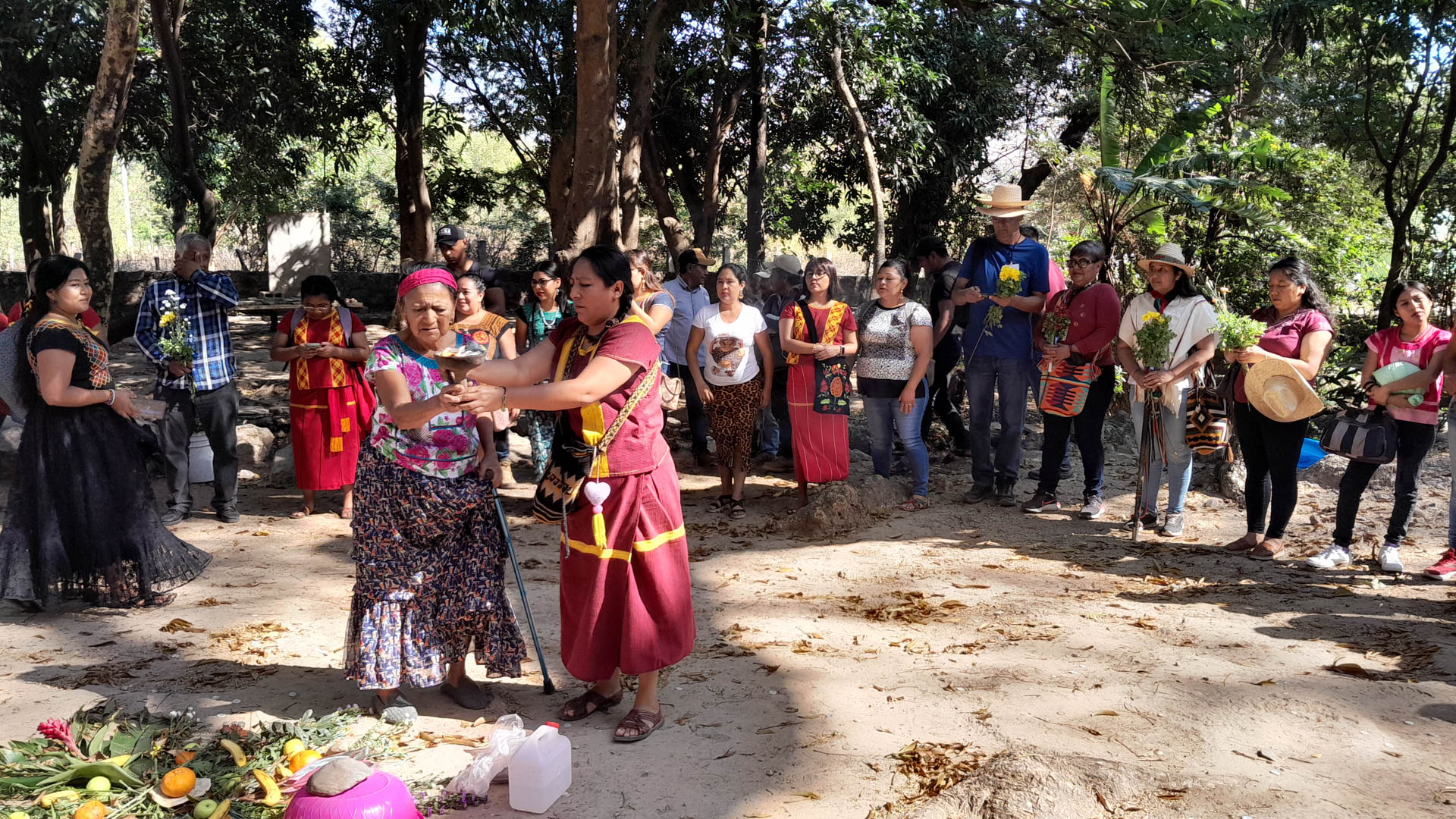 En Santa María Petapa, precisamente en el Centro Agroecológico “Yajxonaax Tierra Bonita”, doña Fidelfa realizó un ritual Ayuujk.