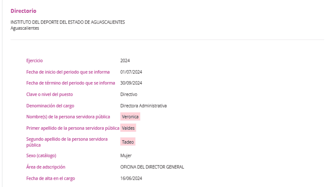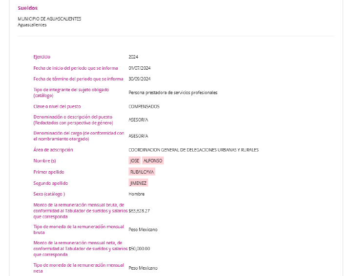Mientras tanto, entre julio y septiembre de 2024, Ruvalcaba Jiménez dejó el Instituto del Deporte y ocupó un cargo de asesor en la Coordinación General de Delegaciones Urbanas y Rurales del municipio capital. En esos mismos meses, Valdés Tadeo empezó a cobrar 92 mil 426 pesos brutos al mes en el IDEA. Aunque en el formato de sueldos aparece como jefa de departamento, en el directorio del Instituto está registrada como directora administrativa, un cargo en el que habría sido dada de alta el 16 de junio de ese año.