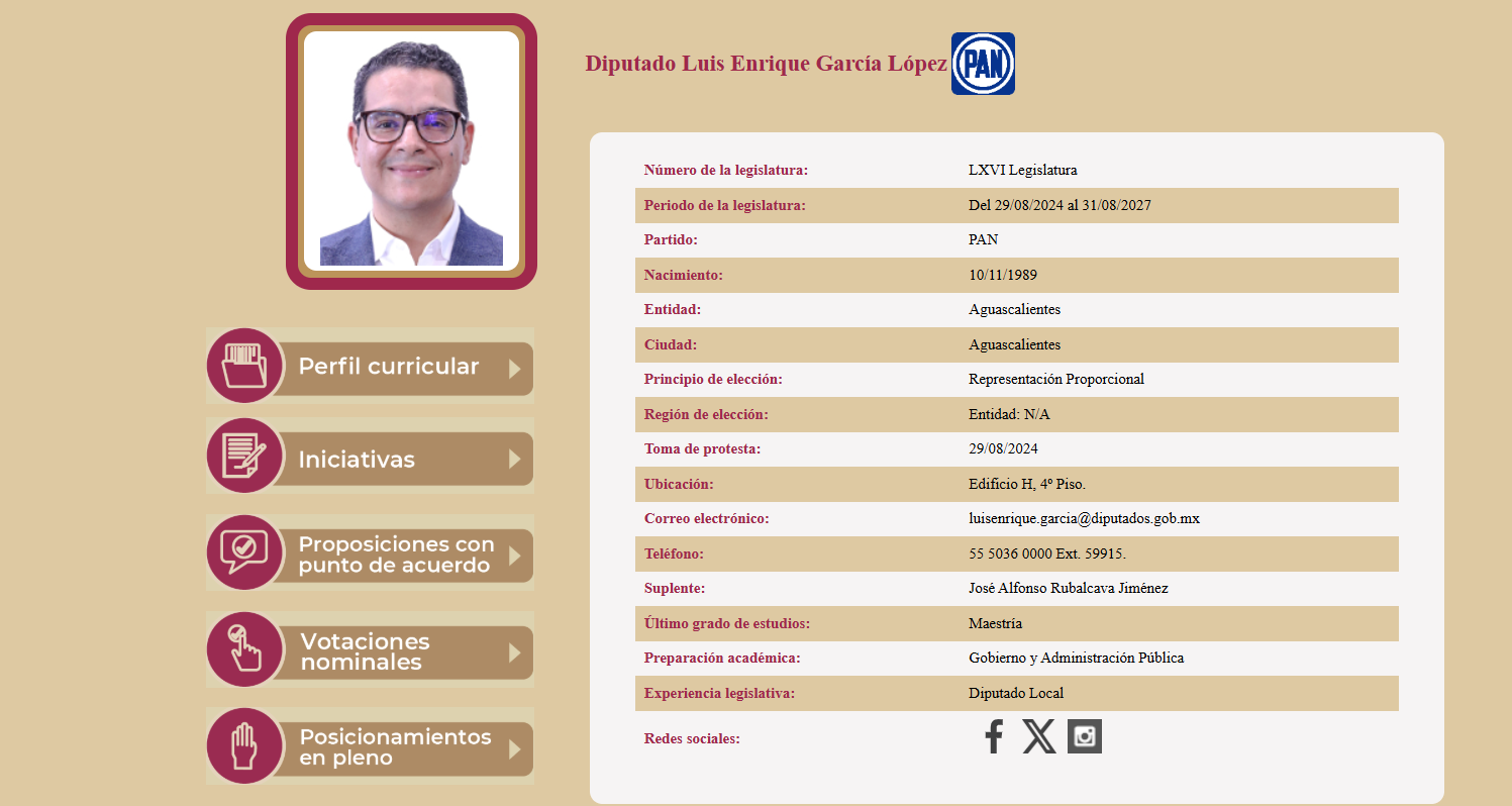 Este 2024 Ruvalcaba Jiménez es suplente en la Cámara de Diputados de Enrique García López, panista, miembro del grupo cercano de la gobernadora y ex subsecretario de gobierno en el gabinete de Jiménez Esquivel.