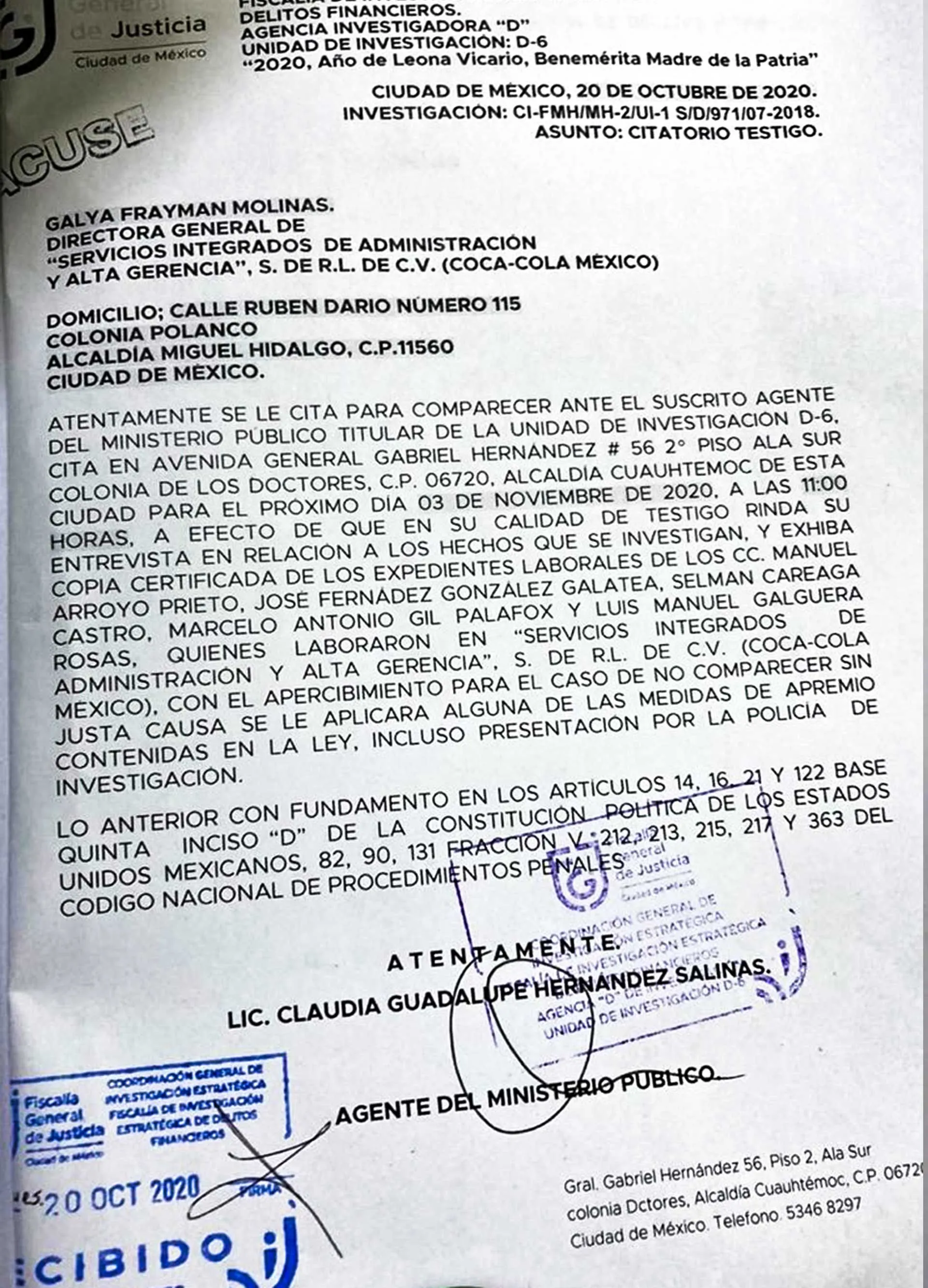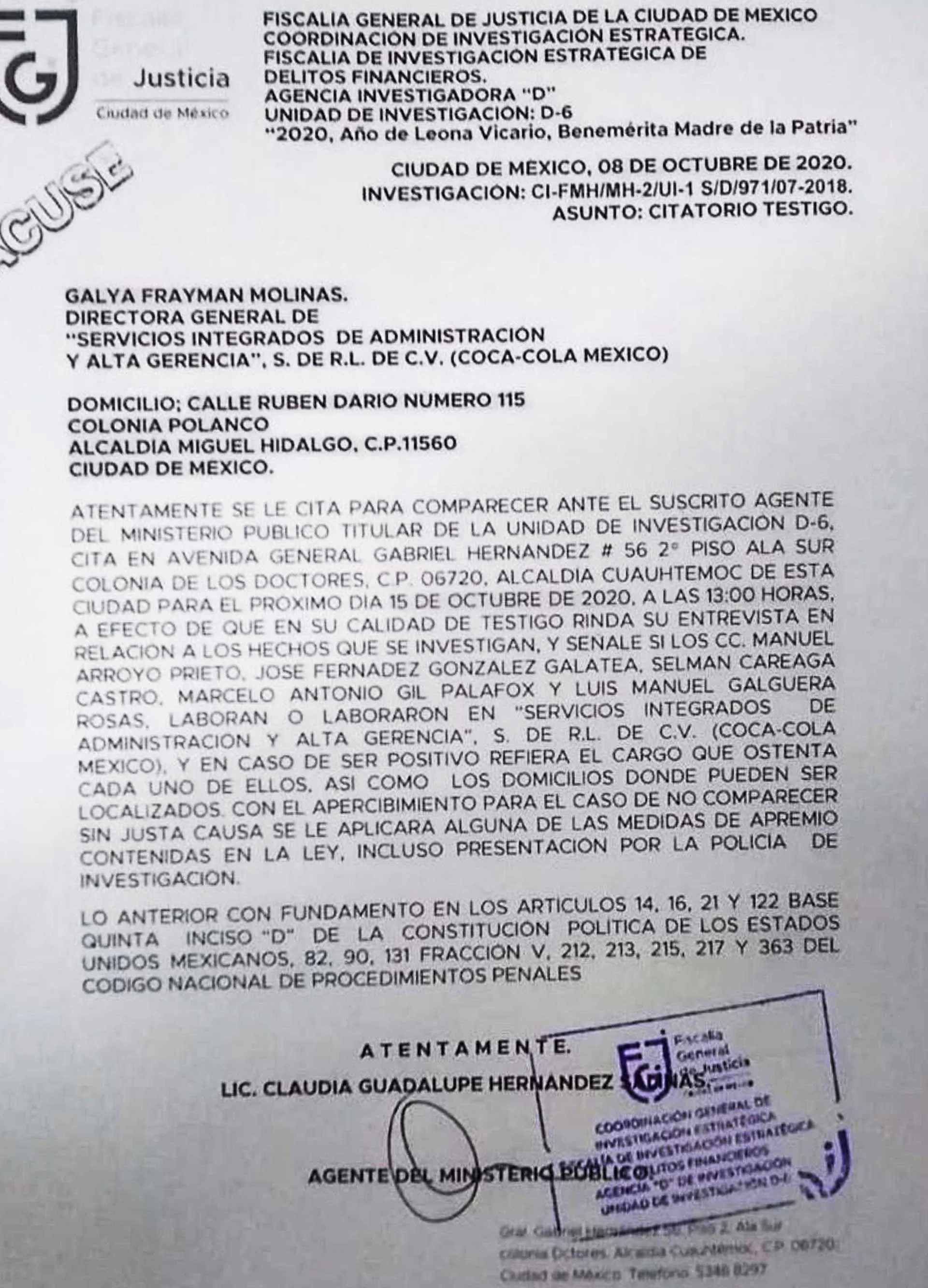 La FGJCDMX declaró que la denuncia penal por fraude estaba fuera de su jurisdicción, transfirió el caso a la Fiscalía General de la República (FGR), solo para que fuera rechazada y regresada a la FGJCDMX.