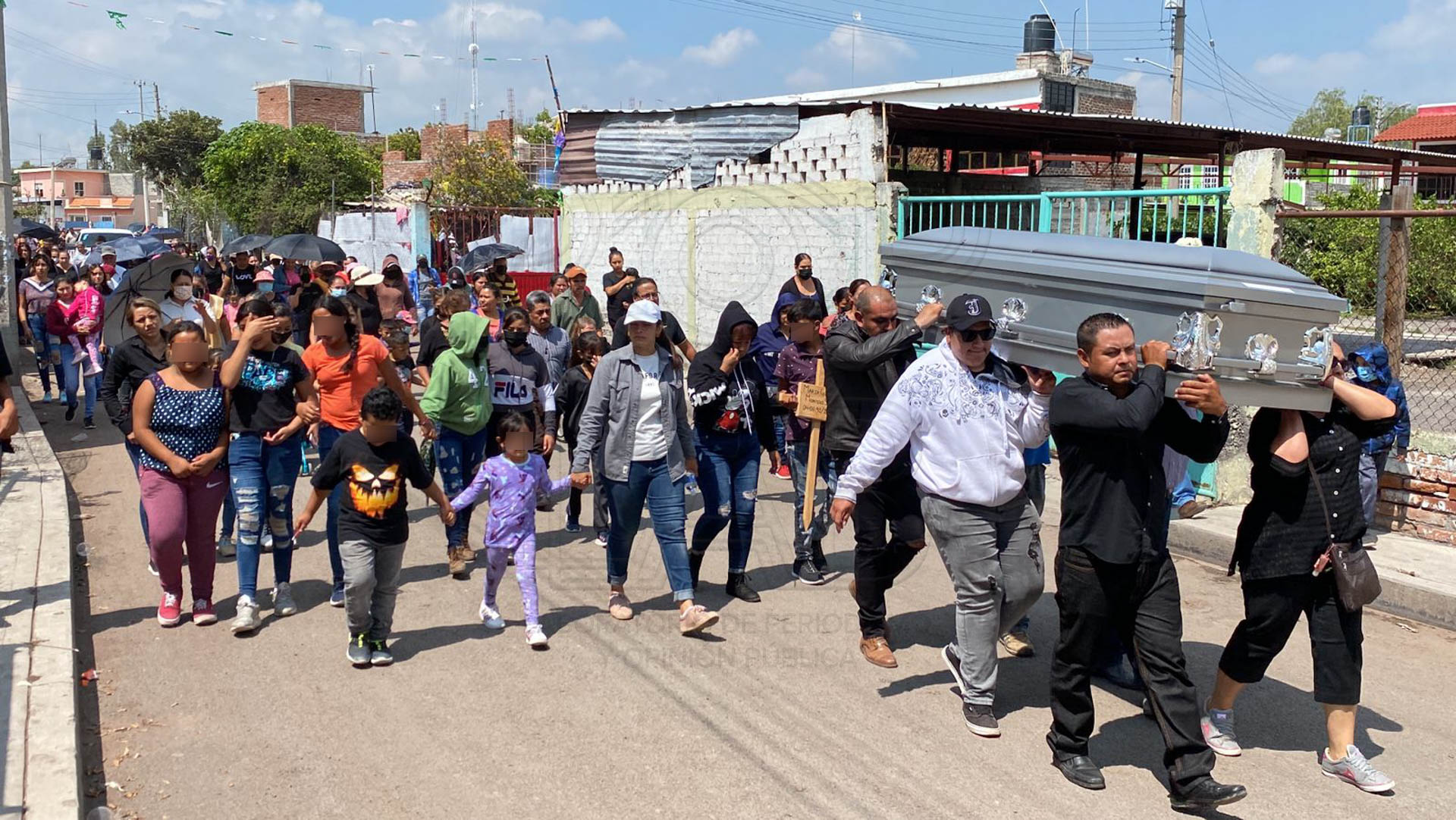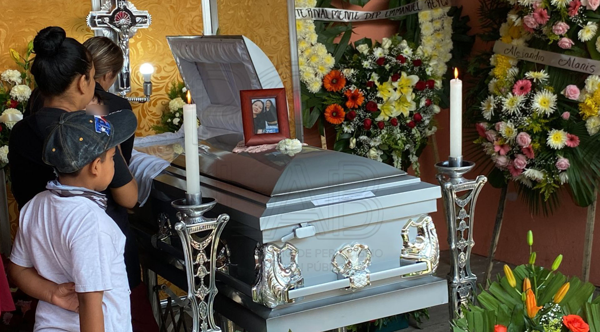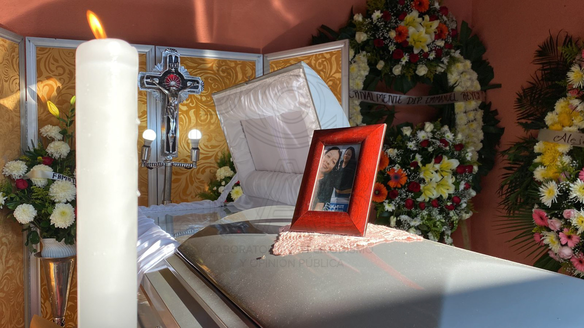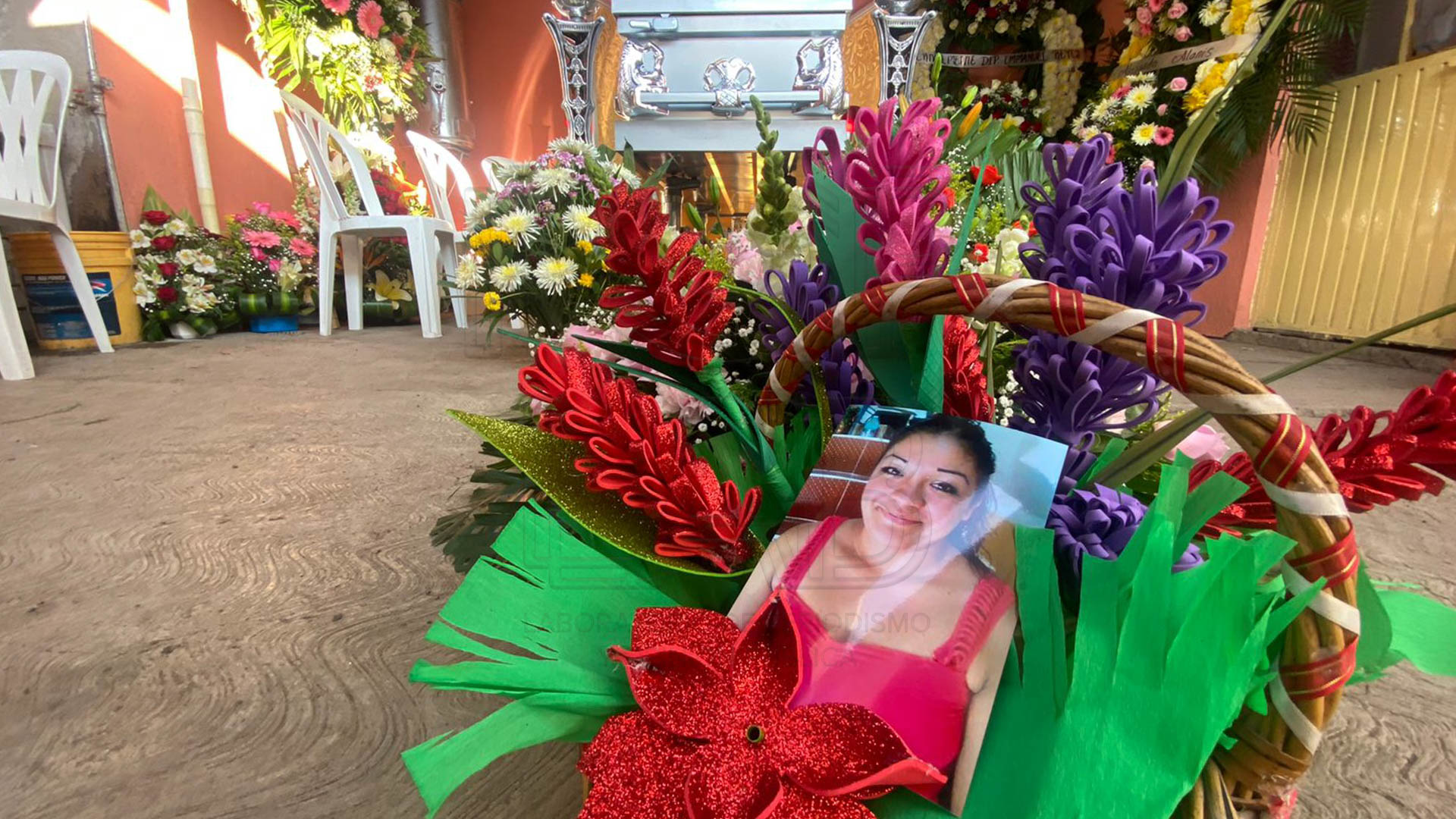 Las flores impregnan su olor sobre el ataúd gris, encima del cual también fue colocada una fotografía de María Guadalupe.