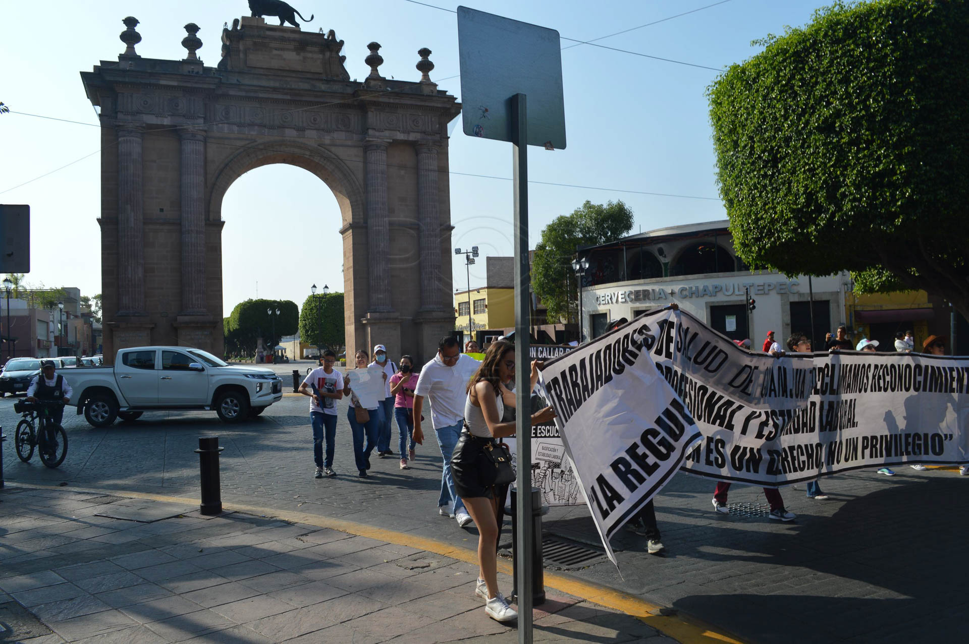 Ni el intenso calor detuvo una nueva protesta a la que se convocó a los trabajadores de la salud. Alrededor de 40 personas se reunieron para exigir sus derechos laborales y la restitución de Erick Moreno y Beatriz Pérez, ex enfermeros del Pediátrico de León despedidos el 21 de abril pasado por reclamar las prestaciones que la ley señala.