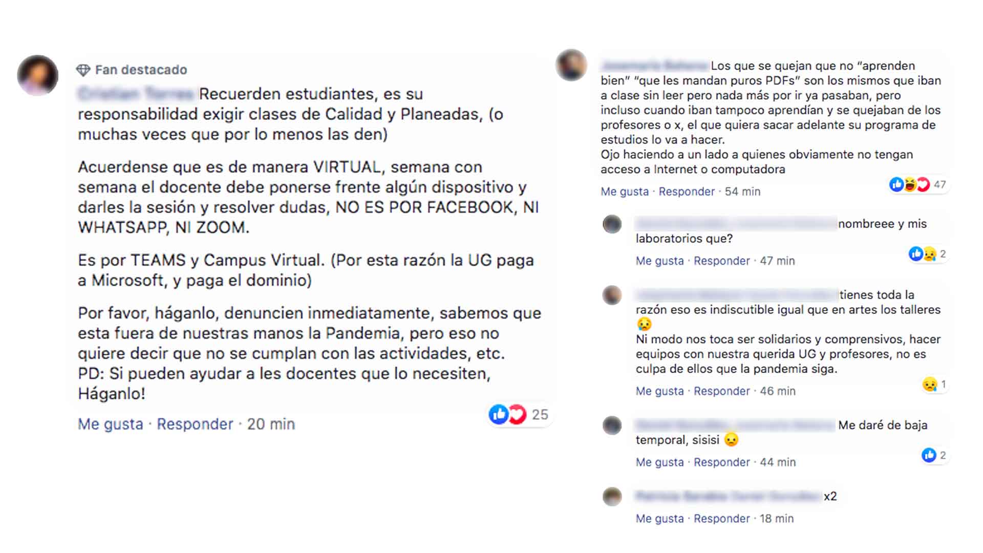 Si bien la UG ha ofrecido cursos para profesores, no se les ha preguntado cómo están los alumnos, si hay estudiantes que no han podido cursar su materia a distancia.