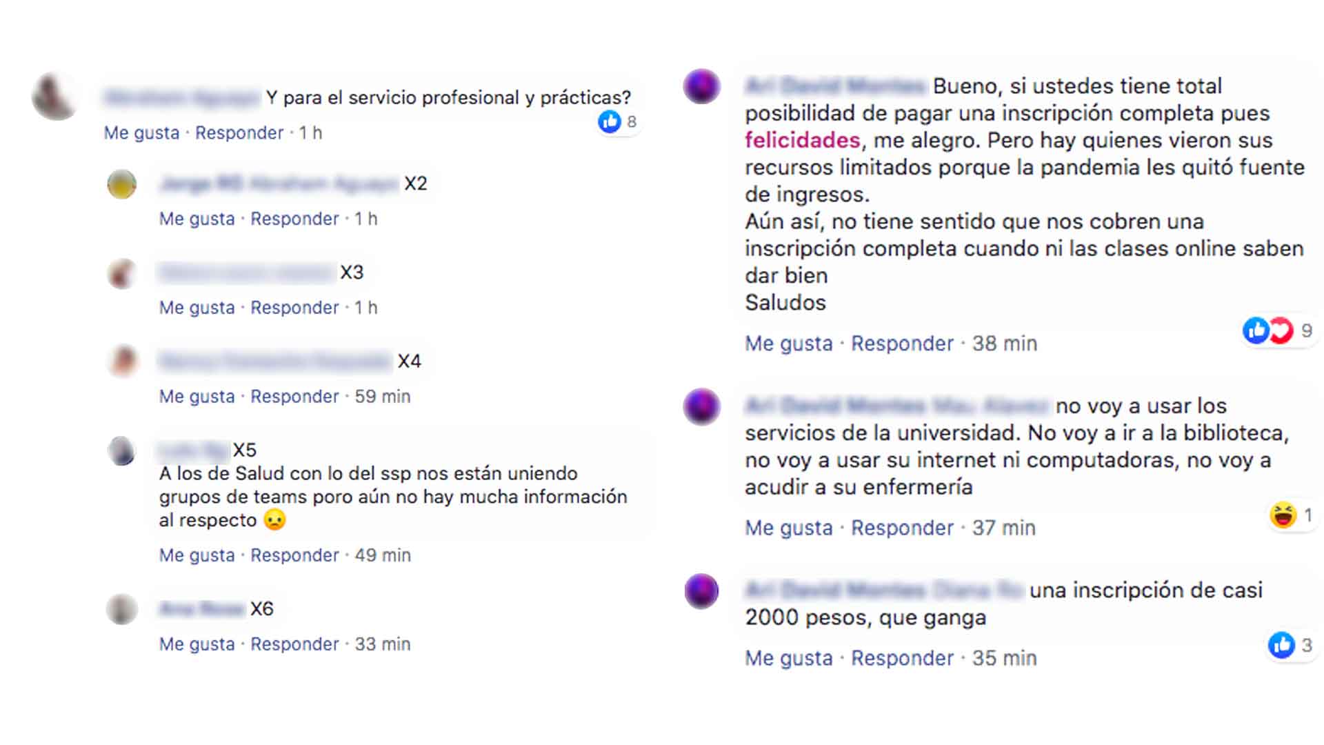En redes, reclamaron que mientras negocios como bares y restaurantes comienzan a tomar medidas sanitarias para tener de regreso a los clientes, en la Universidad no se tengan contemplados protocolos que permitan abrir espacios para el desarrollo y formación de los estudiantes.