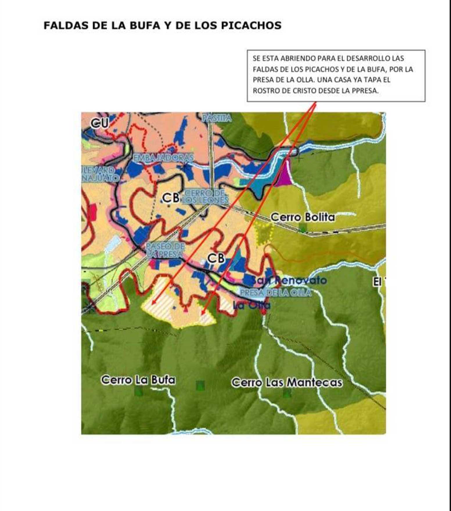 Las intenciones de urbanizar los cerros de La Bufa, Los Picachos y El Hormiguero no son nuevas; sin embargo, con la movilización ciudadana que se generó en 2010 se frenó el desarrollo proyectado por la familia Marcocchio en 38 hectáreas para un conjunto habitacional, turístico y comercial.