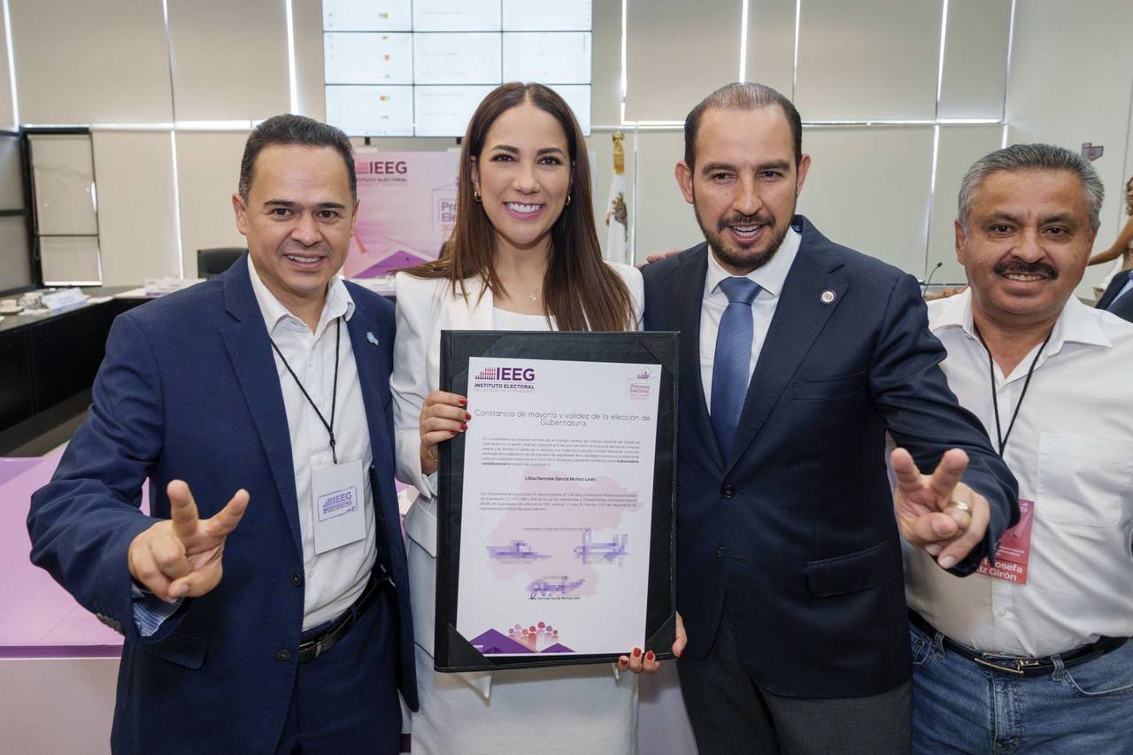 Libia Dennise García Muñoz Ledo se convirtió, oficialmente, en la primera mujer en Guanajuato electa para la gubernatura. Llegó al salón del Consejo General del Instituto Electoral del Estado de Guanajuato (IEEG) acompañada de su familia y rodeada de un grupo de varones, incluido Marko Cortés, en una cortesía para el dirigente nacional del PAN, después de que la coalición Fuerza y Corazón solo pudo salvar la elección a la gubernatura en Guanajuato.