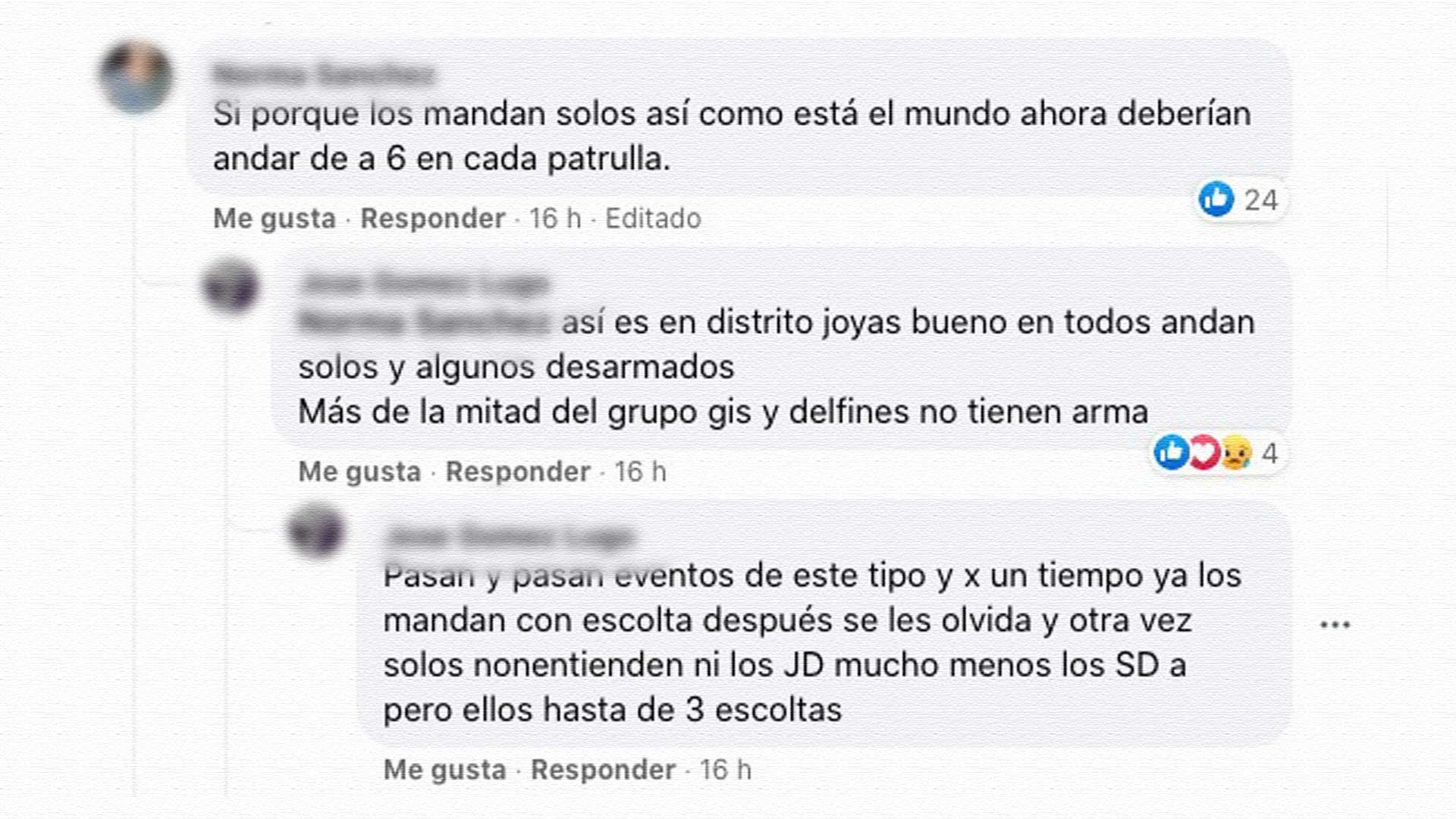 Para muestra, tres comentarios consecutivos en la publicación que hizo esta mañana la SSP Municipal, al poner un moño negro en la foto de perfil de redes sociales: