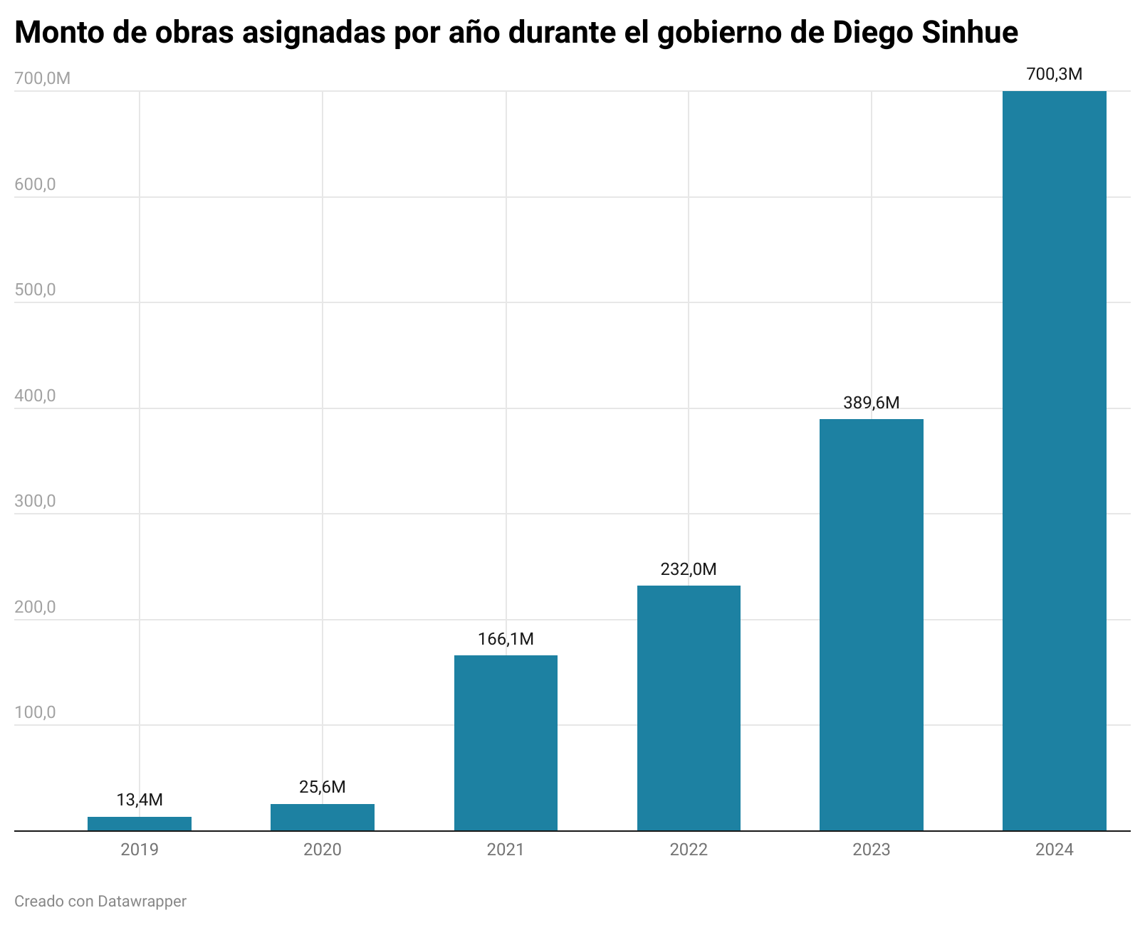 El registro de las obras asignadas por la administración estatal al Consorcio Constructor Eco del Bajío S.A. de CV refleja que su despegue comenzó con el gobernador Diego Sinhue Rodríguez Vallejo a partir de 2019. Sin embargo, en ese año, la empresa solo fue favorecida con una adjudicación directa por poco más de 13 millones de pesos.