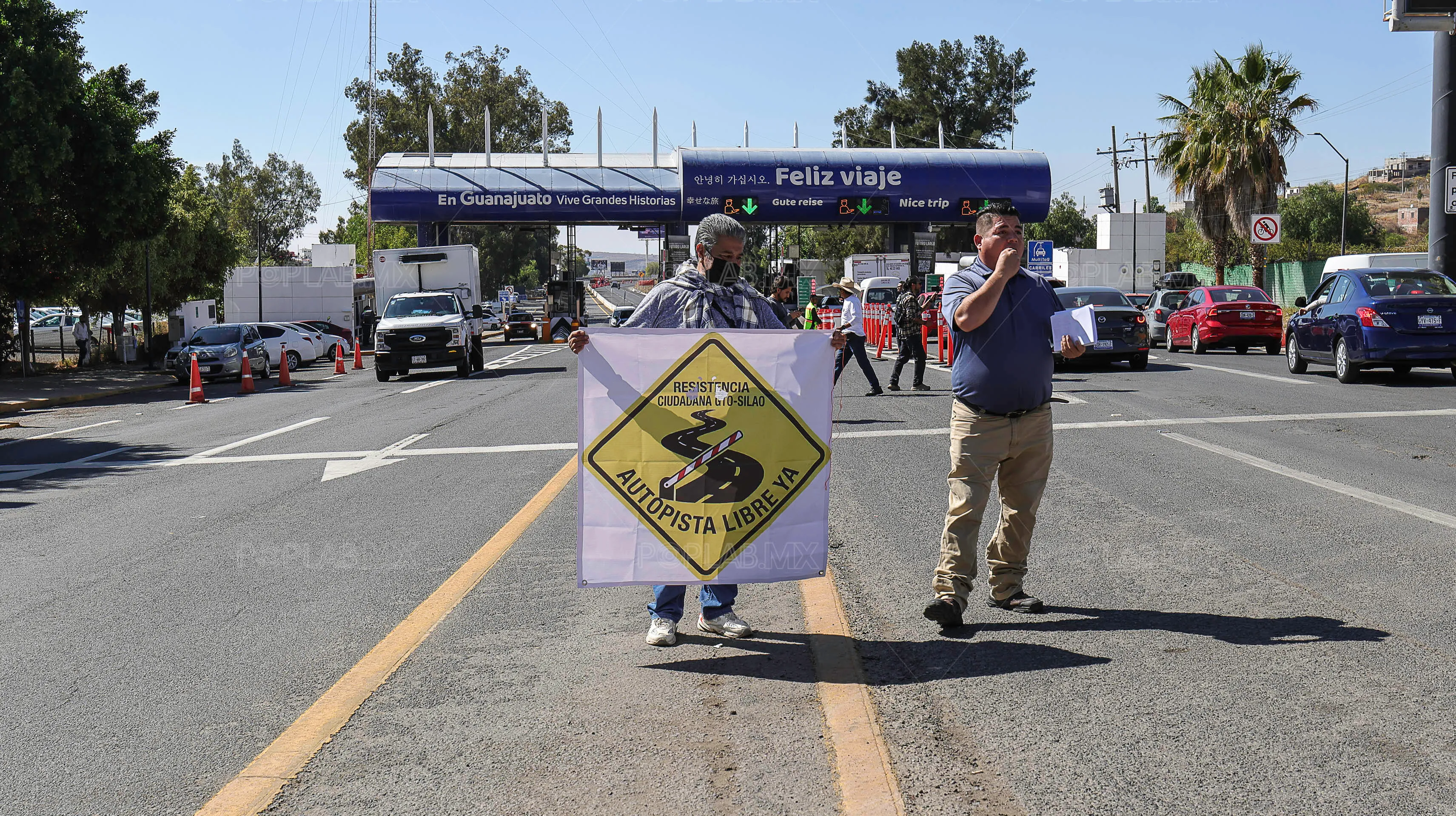 Con bocinazos y volanteo exigen liberar peaje de autopista en Guanajuato