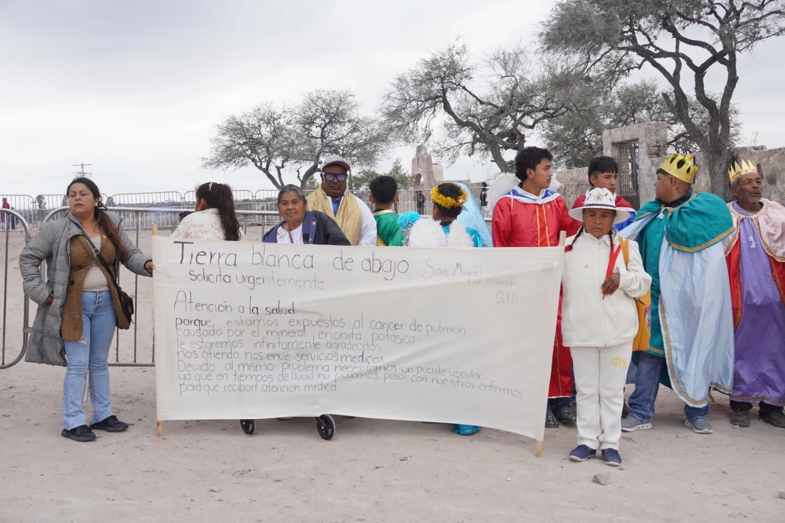 En el evento, otro grupo de personas de la comunidad Tierra Blanca de Abajo, San Miguel de Allende, llegó con una manta en la que piden atención a la salud, al señalar que sus habitantes están expuestos a erionita, un mineral peligroso que puede causar cáncer.